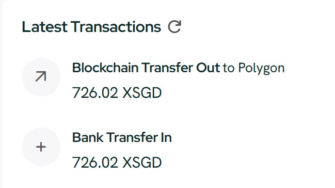 但是StraitsX里不但可以把XSGD兑换USDC,还可以把XSGD提出来到自己钱包,然后自己去链上兑换USDC,这样就没有交易所这0.5%费用,就可以换更多。测试了两个钱包: