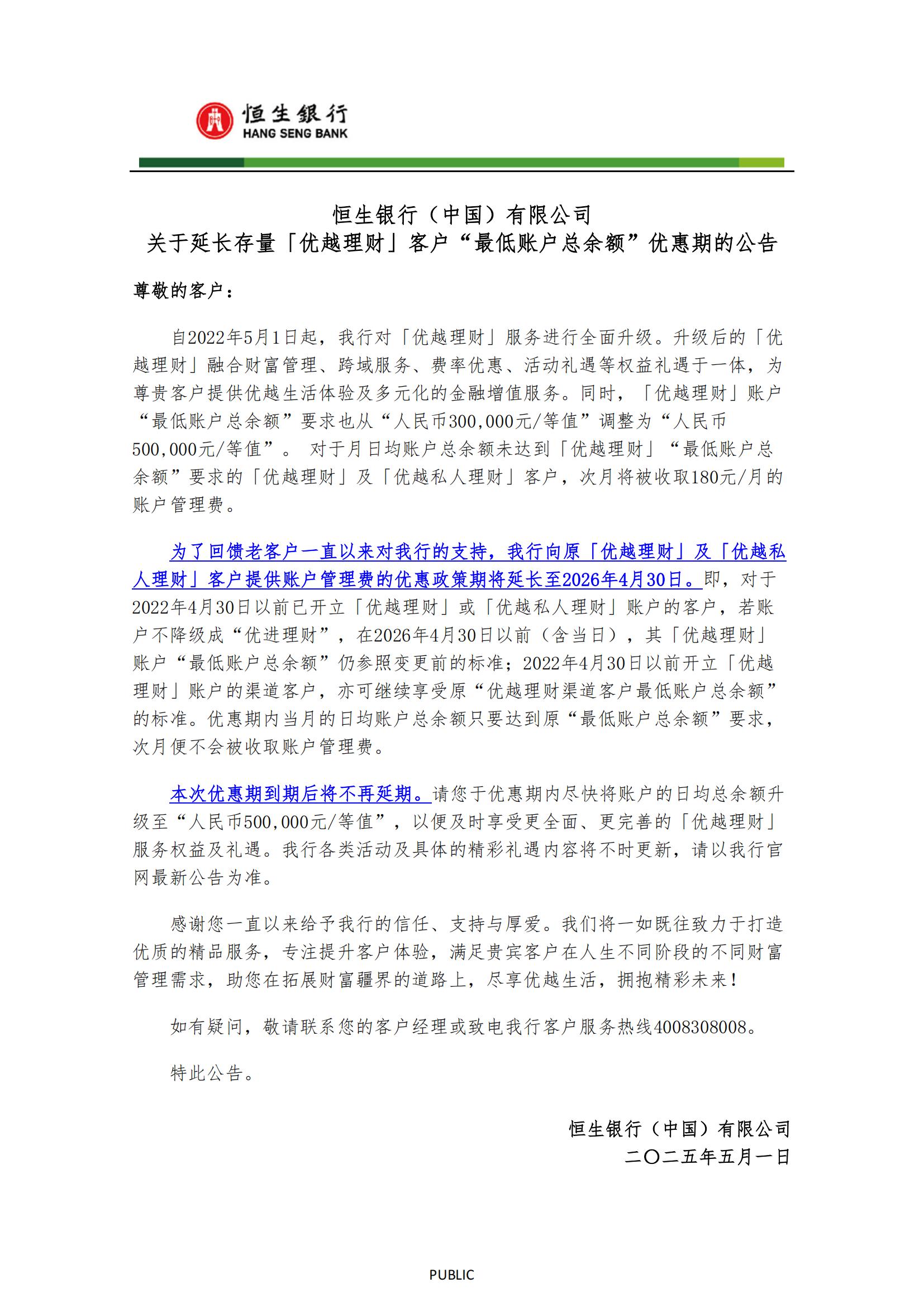 眨眼又是一年了,不知原先开立的恒生的渠道客户,还能不能以内地10万+人民币的结余享受优越账户